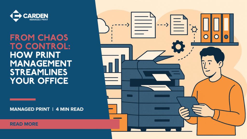 Let’s face it, printing probably isn’t the first thing on your mind when you walk into the office. But if you’ve ever had a team member miss a deadline because the printer jammed, or you’ve seen boxes of paper fly out the door without any clue who’s printing what, you know the impact can add up. Slowly, quietly, printing chaos can creep in.